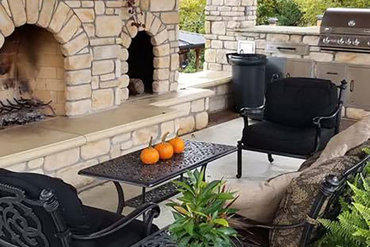 • Outdoor Kitchen, fireplace, tv, sink and small fridge and 60' saltwater pool
